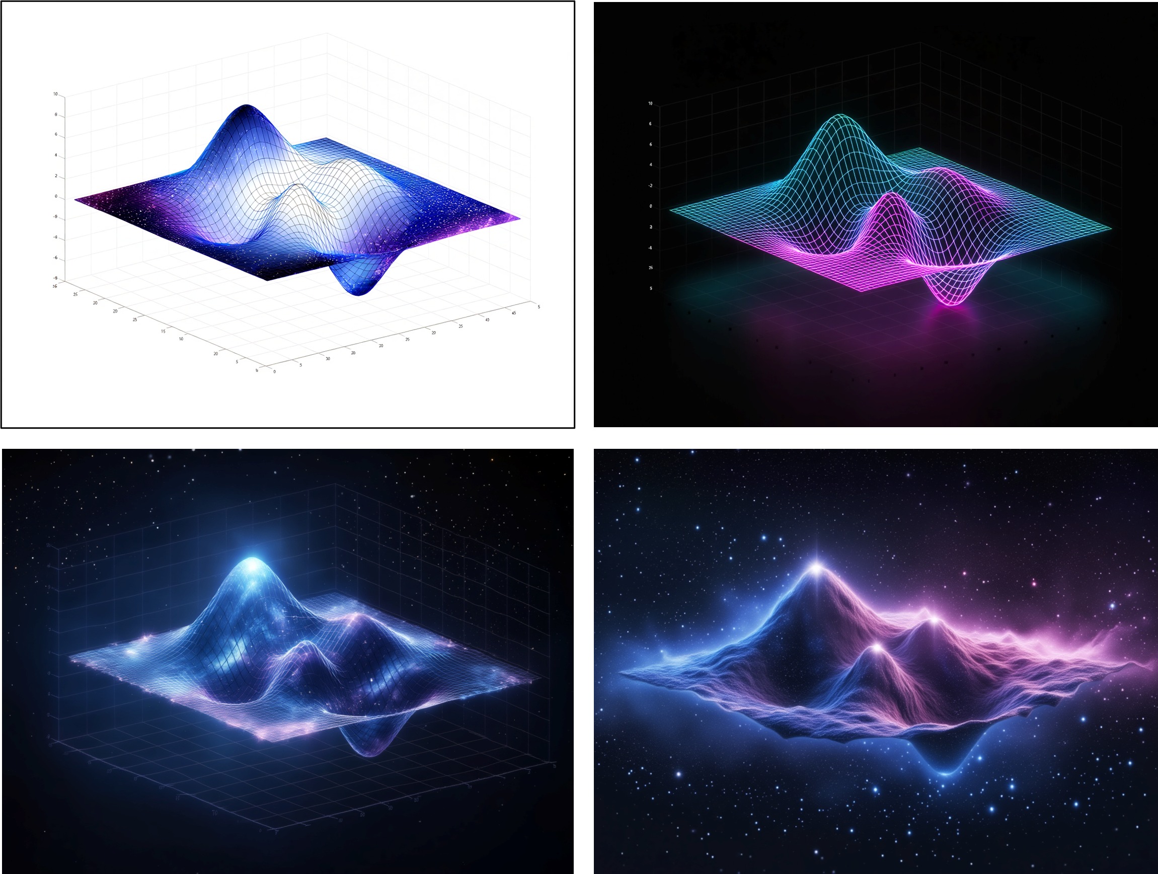 Reve a été très surprenant par la qualité de son rendu généré, sa compréhension et son respect du prompt. Contrairement à de nombreux modèles gourmands, les prompts n’ont pas besoin d’être excessivement longs pour obtenir des résultats précis. C’est un bonus non négligeable le modèle comprend très bien le français. Là où Reve excelle particulièrement, c’est dans la finesse de l’analyse de visuels de référence. Il ne se contente pas de piocher une palette de couleurs, mais va jusqu’à la compréhension de la texture, ouvrant des possibilités créatives immenses. Pour chaque requête, Reve génère d’ailleurs quatre propositions visuelles qui sont peu redondantes et offrent des pistes créatives variées.